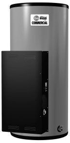 Rheem ES50-27G 50 Gallon Heavy Duty Electric Commercial Water HeaterRheem is a privately held manufacturing company that began operation in 1927 as a supplier of packaging to the petroleum industry. In the 1930's and 1940's, Rheem began manufacturing water heaters and warm air furnaces. Since then the company has acquired Ruud Manufacturing Company, a pioneer in the industry with a well-regarded product line throughout North America. Today, Rheem is a leading North American producer of water heaters, central warm air furnaces and air conditioners, and swimming pool heaters and commercial boilers. The company's products are used for residential and commercial applications and operate on a variety of fuels. Rheem and Ruud water heating includes water heaters, tankless water heaters, residential water heaters, commercial water heaters, solar water heaters, industrial water heaters and water heater accessories. Innovative Rheem tankless water heaters have changed the way we heat water. Rheem ES50-27G 50 Gallon Heavy Duty Electric Commercial Water Heater Features:; System Sentinel L.E.D. diagnostic system; Surface mounted and immersion thermostat models available; Lifeguard stainless steel elements; 208, 240, 277 and 480 voltages; Manual reset high limit control; Magnetic contactors and integral fusing; Hot outlet and cold inlet are 1-1/2" NPT dielectric nipples; 3" Rigid foam insulation; Heavy duty anode rods; Full port, full blow, brass drain valve; Factory installed AGA/ASME rated T&P relief valve ; Input: 27kw; 50 Gallon